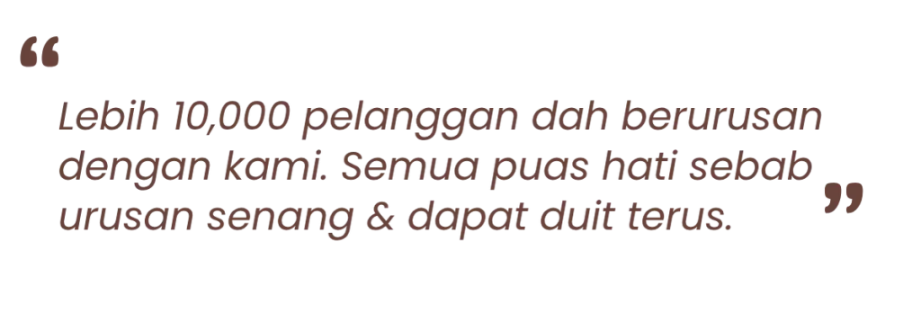 Hasilnya? Anda bawa pulang duit tunai atau terima ‘instant transfer’ pada hari yang sama!